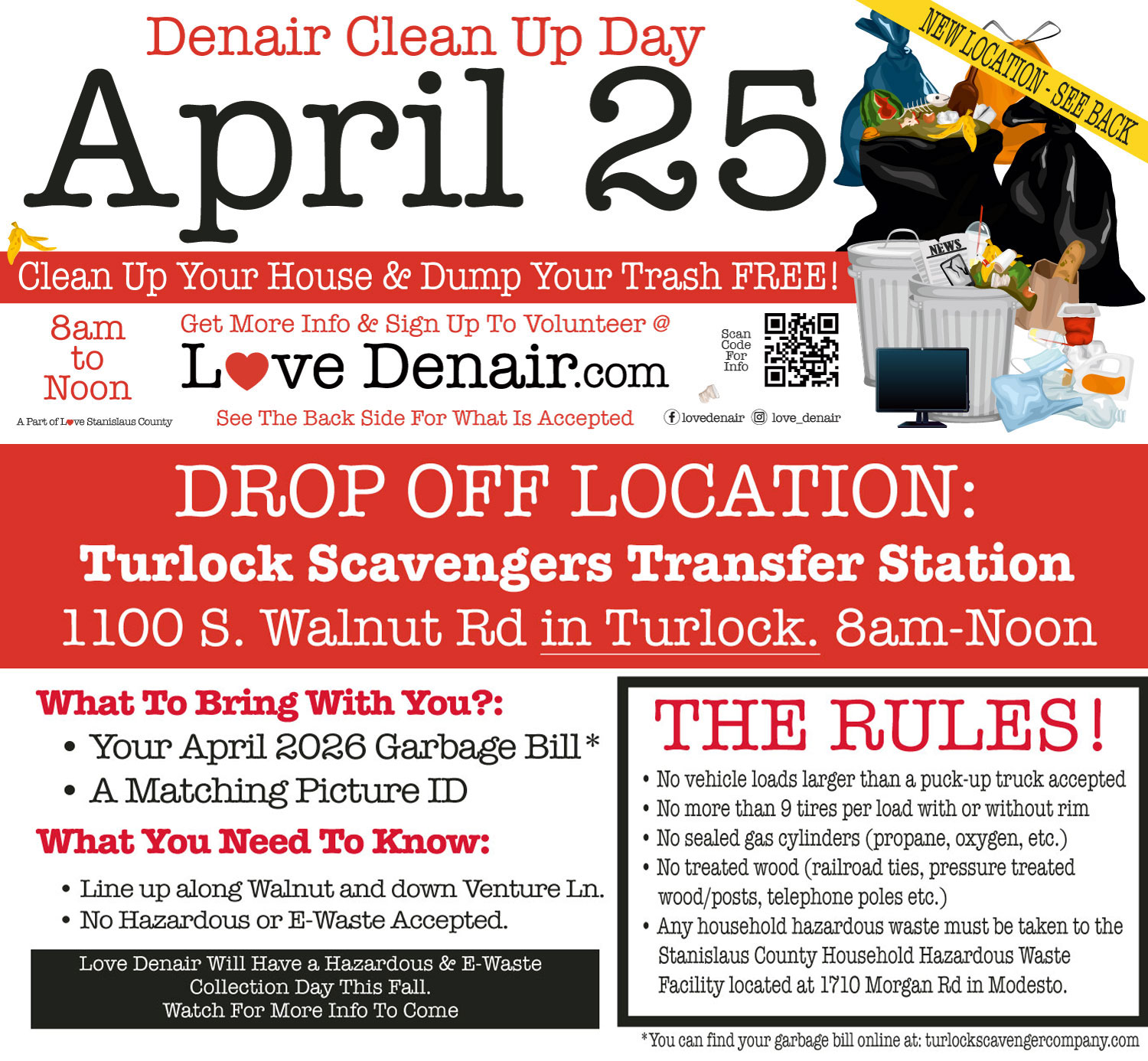 Thank you to everyone that volunteered during our 2025 Denair Cleanup Day. We look forward to improving and working on this project again next year. If you have input we invite you to attend one of our planning meetings. The meetings are held the second Tuesday of each month at the Denair Unified School District Board Room at 3460 Lester Rd., Denair.